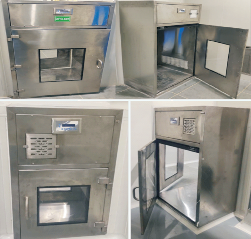 - Dynamic pass box with double walled glass, Acrylic, view panels in doors.