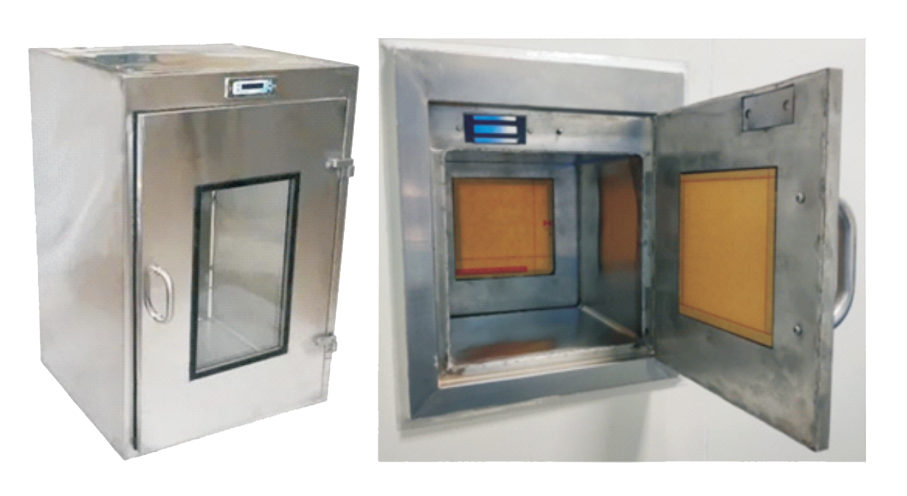 • Static pass box with double walled glass, Acrylic, view panels in doors.